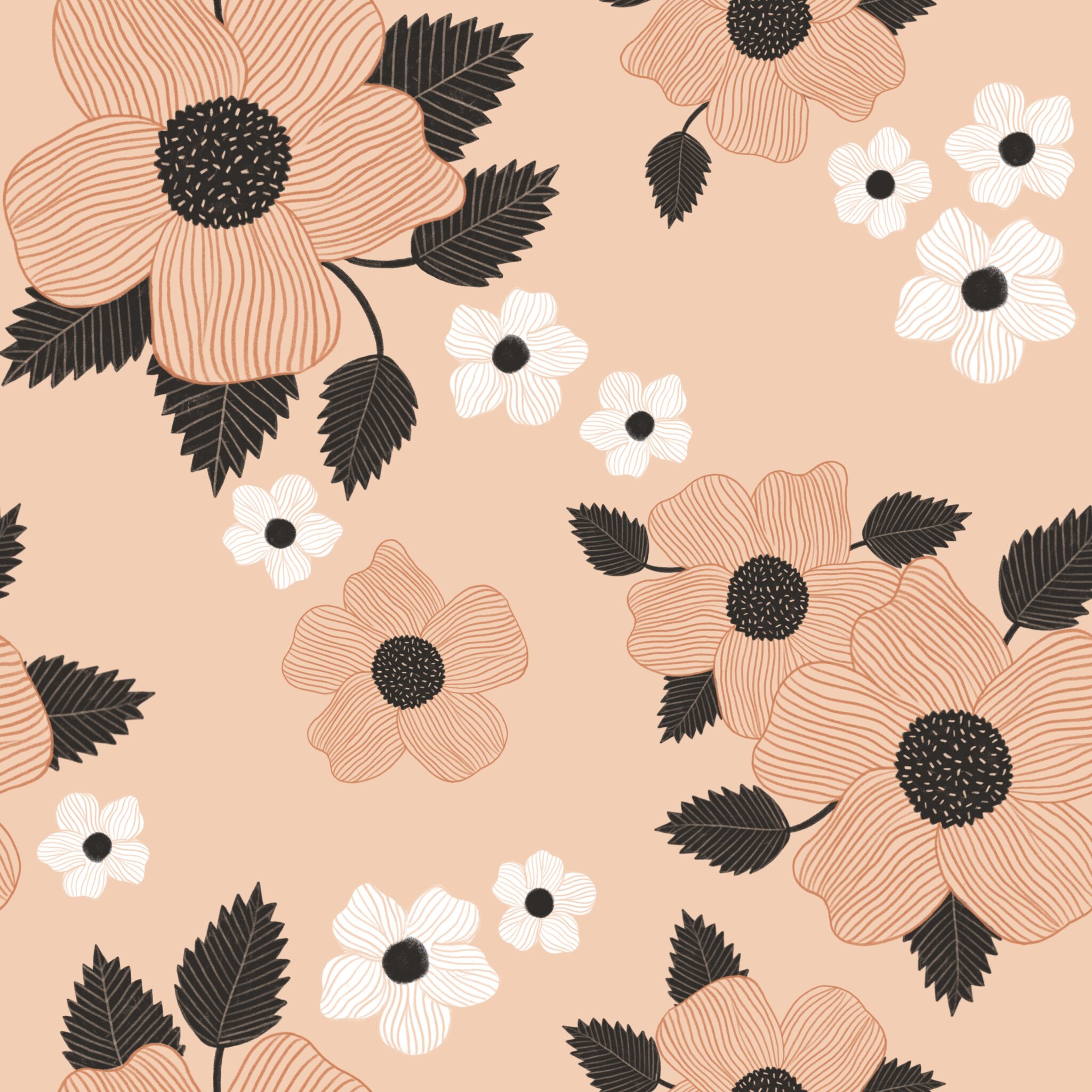 I try to reinvent myself sometimes when I have time in between commissions. This time I have been practicing making patterns. I found it very relaxing to draw flowers and it will not be the last time I do it! ❤︎